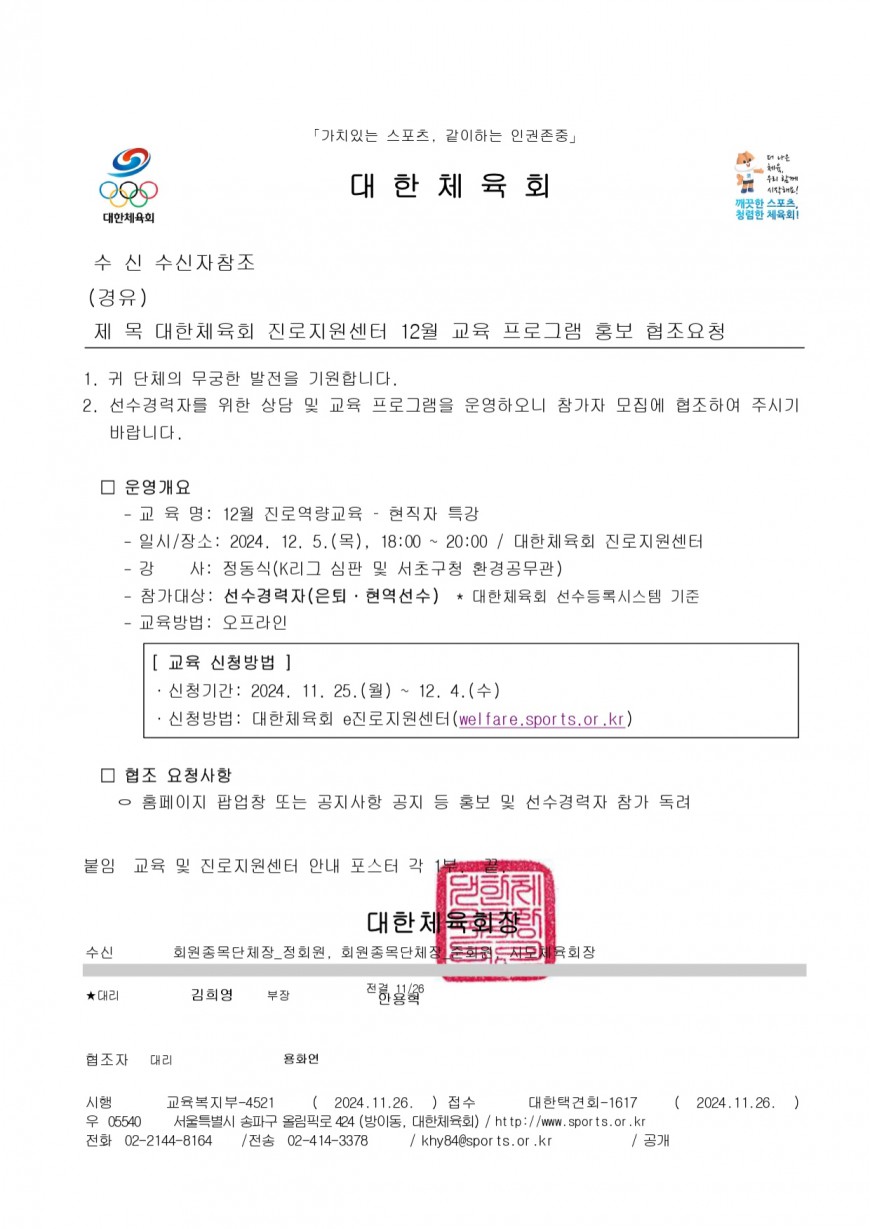 [대한체육회] 진로지원센터 12월 진로역량교육 - 정동식 심판 현직자 특강